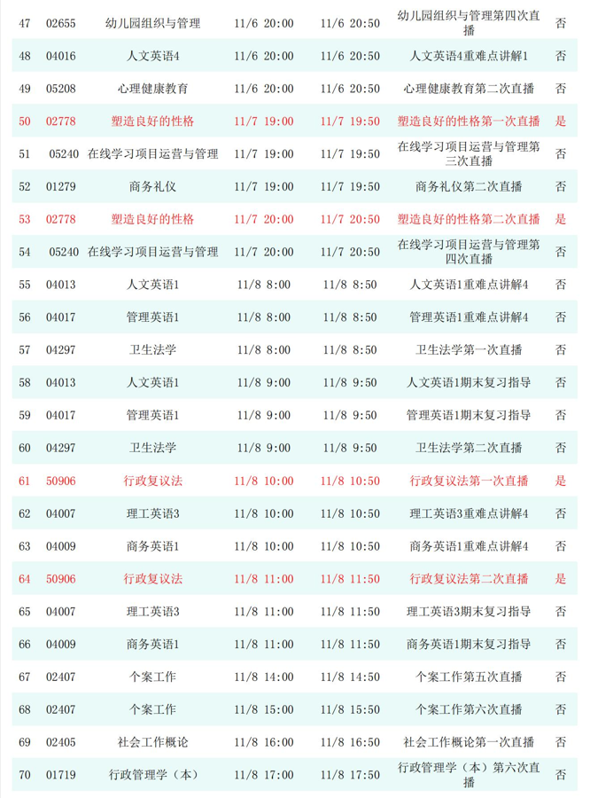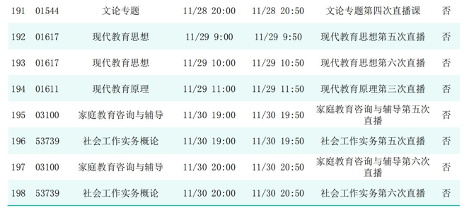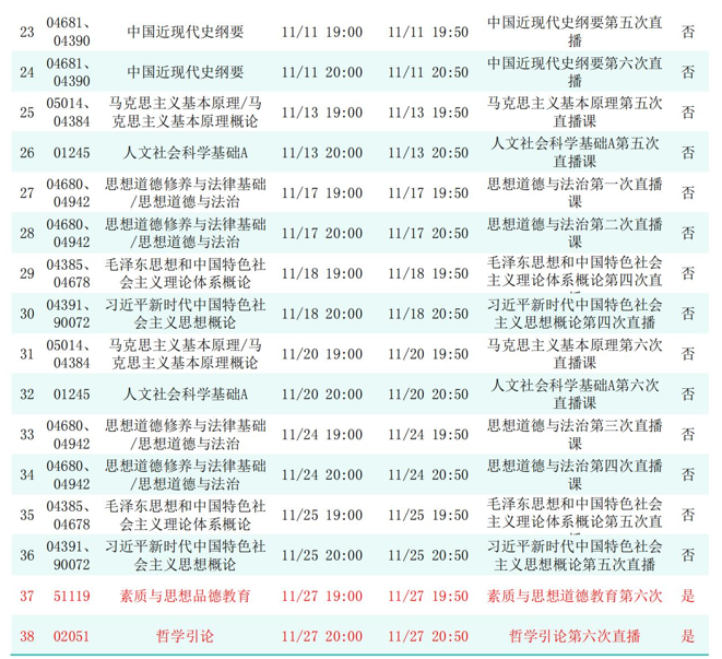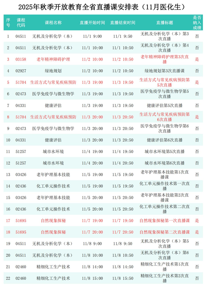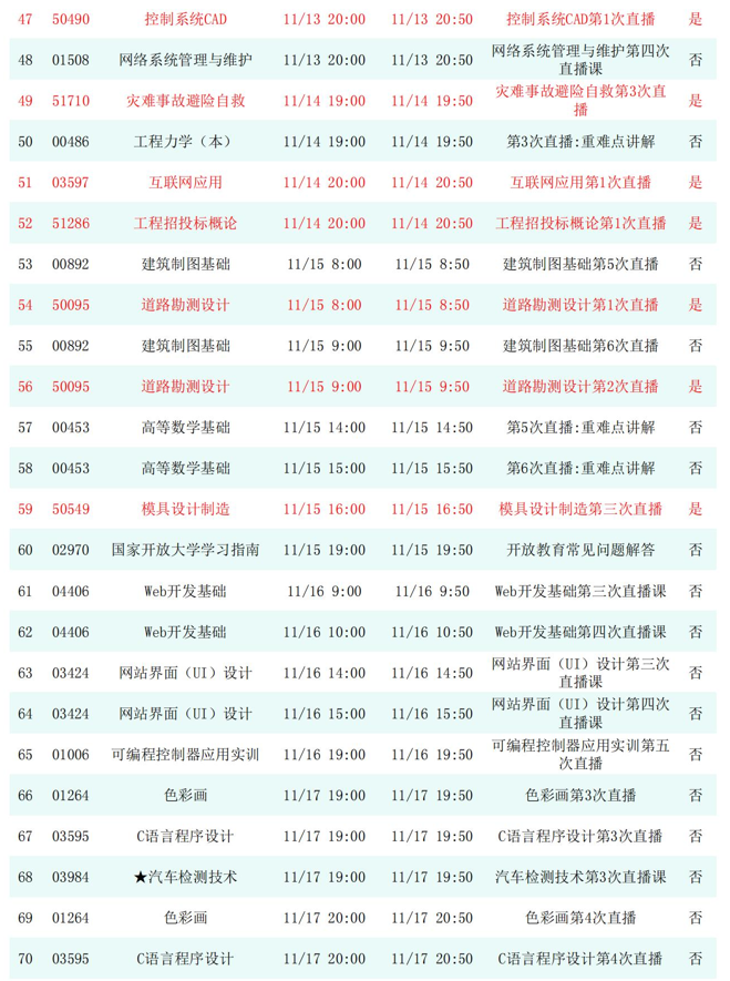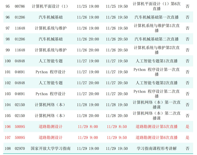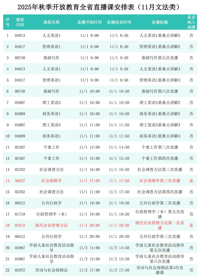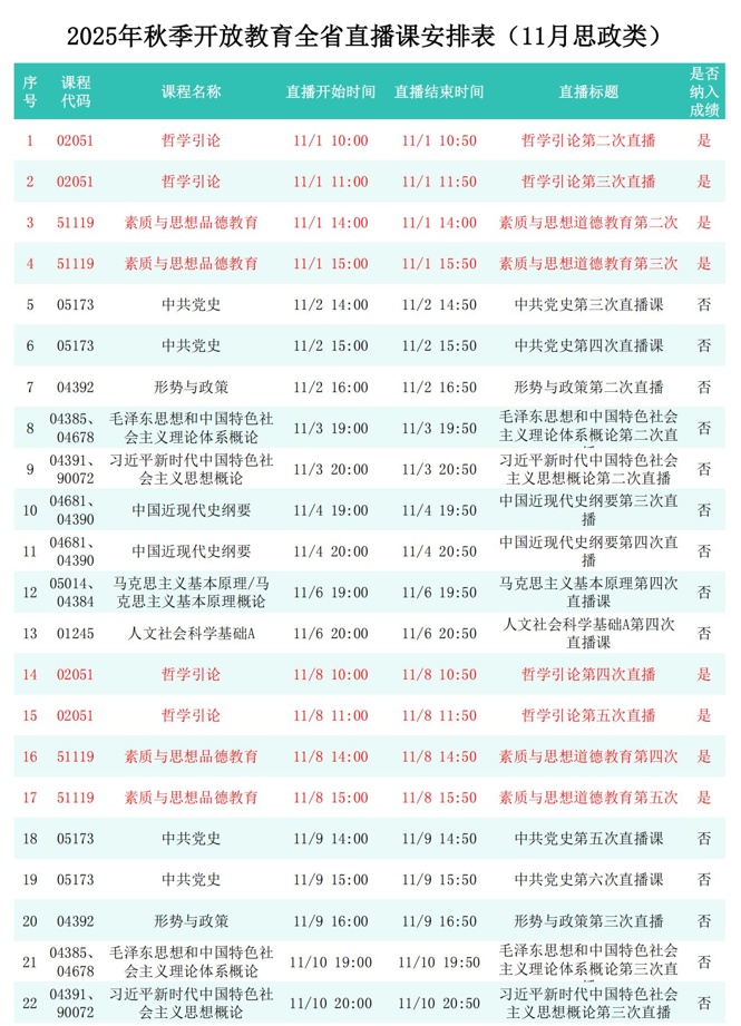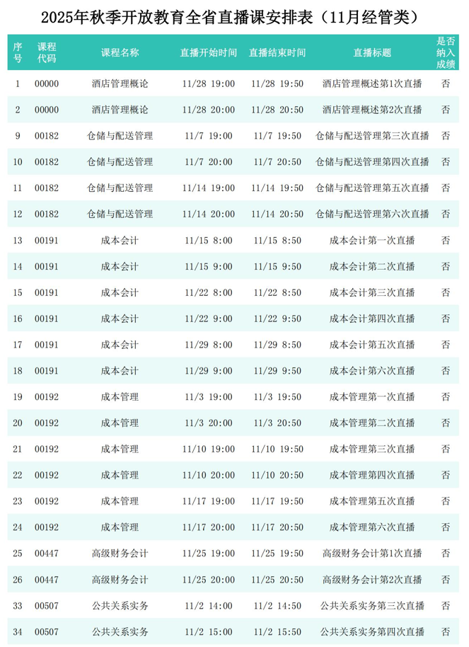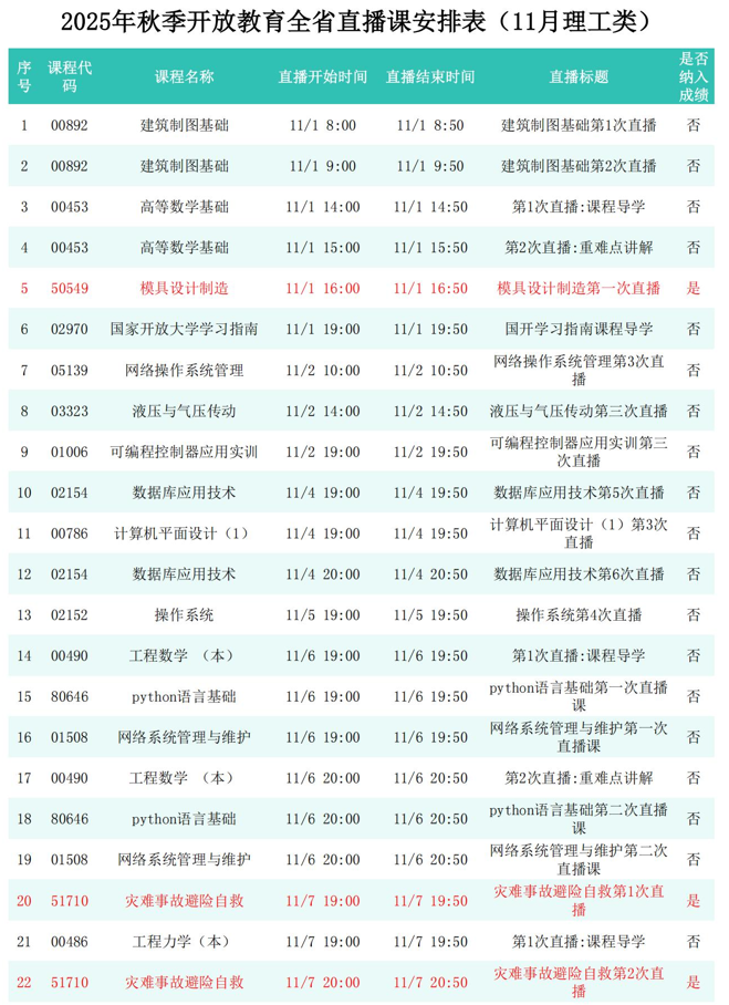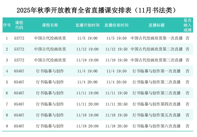 2025年秋季学期开放教育全省直播课安排表(11月)