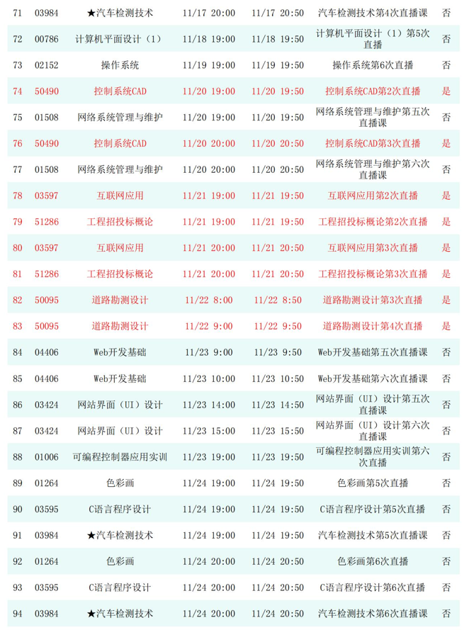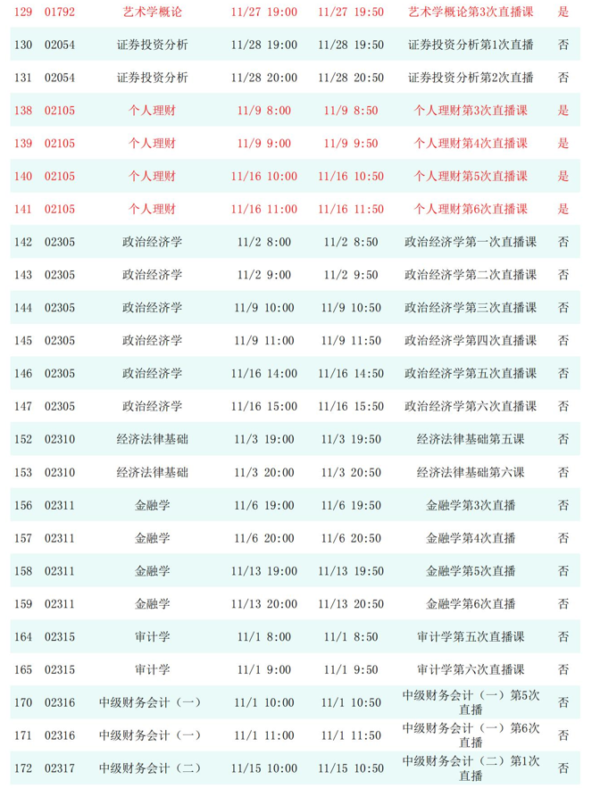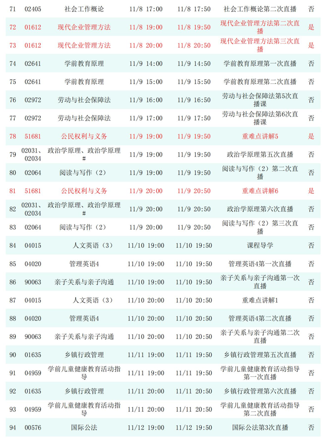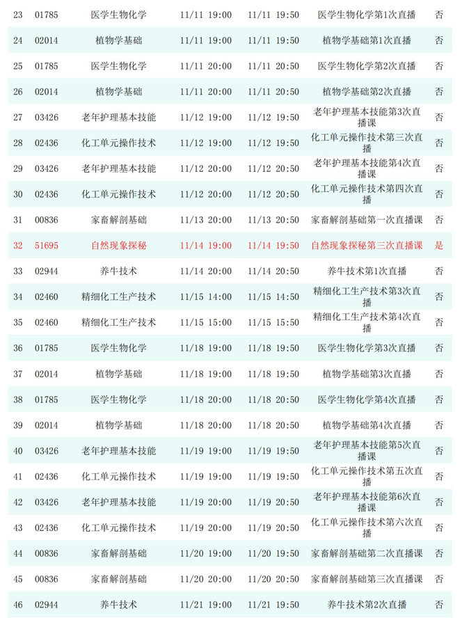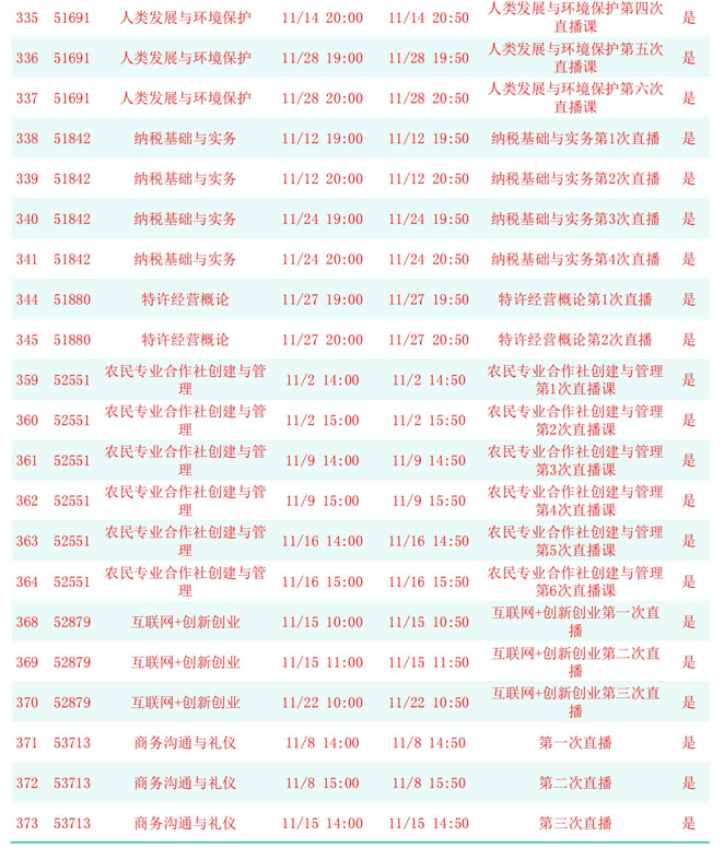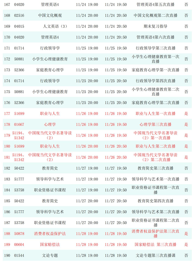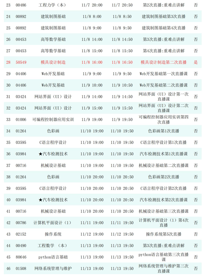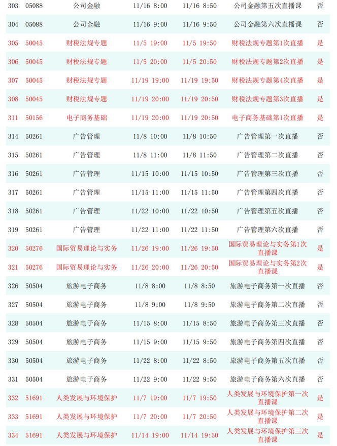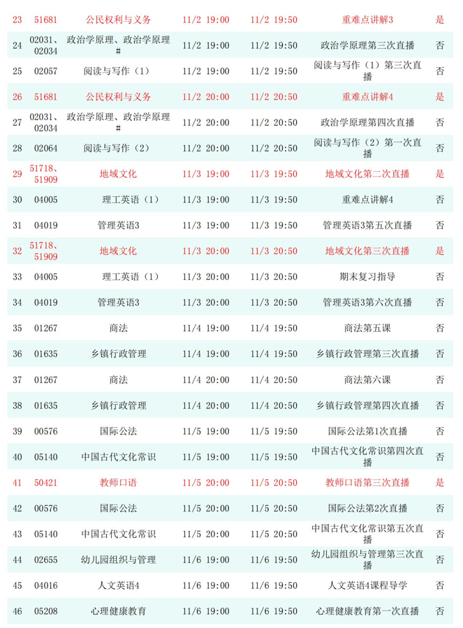 2025年秋季学期开放教育全省直播课安排表(11月)