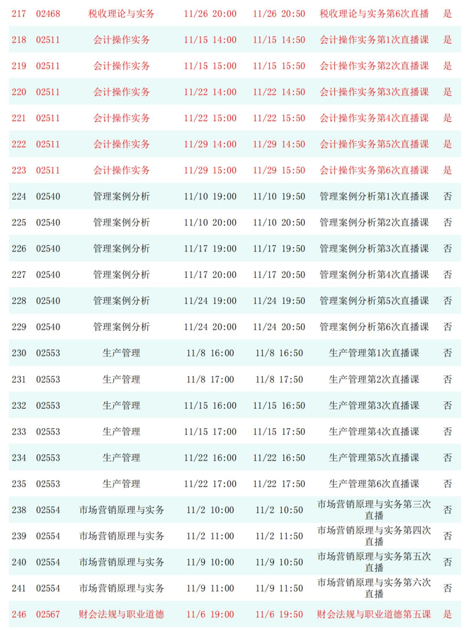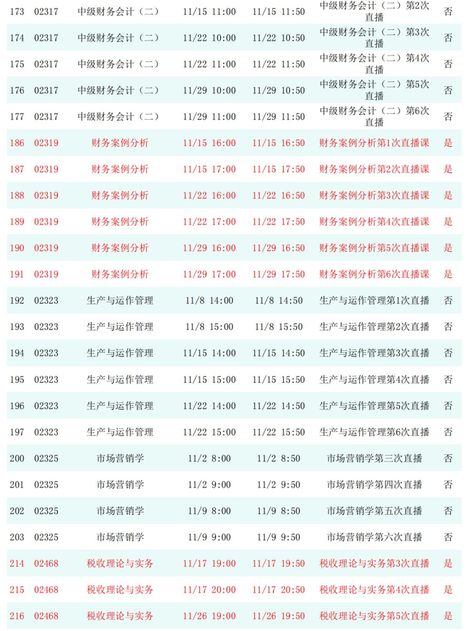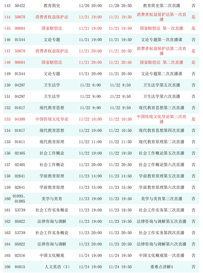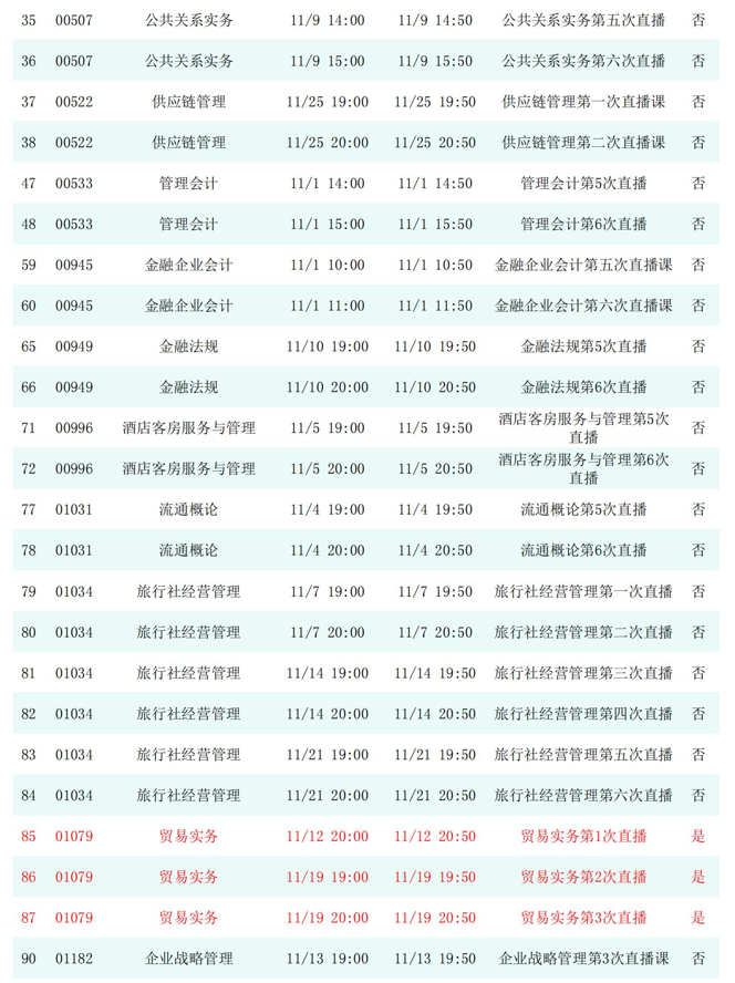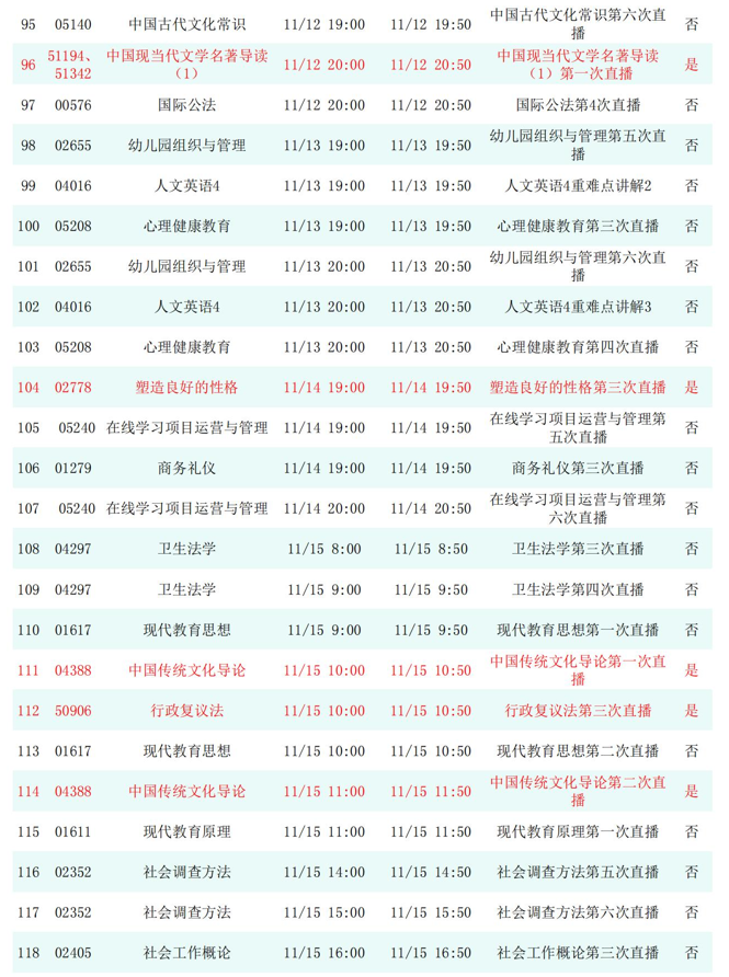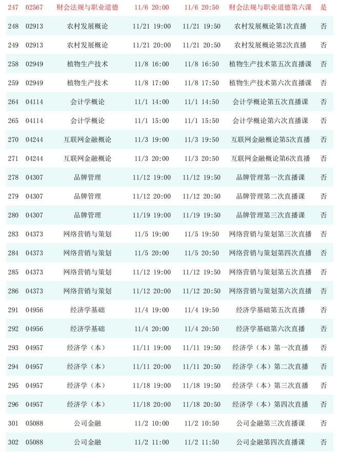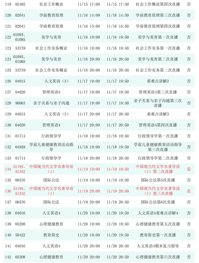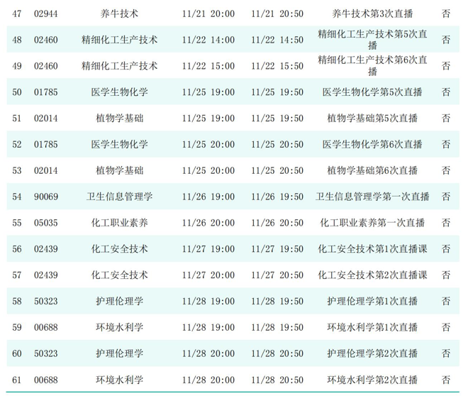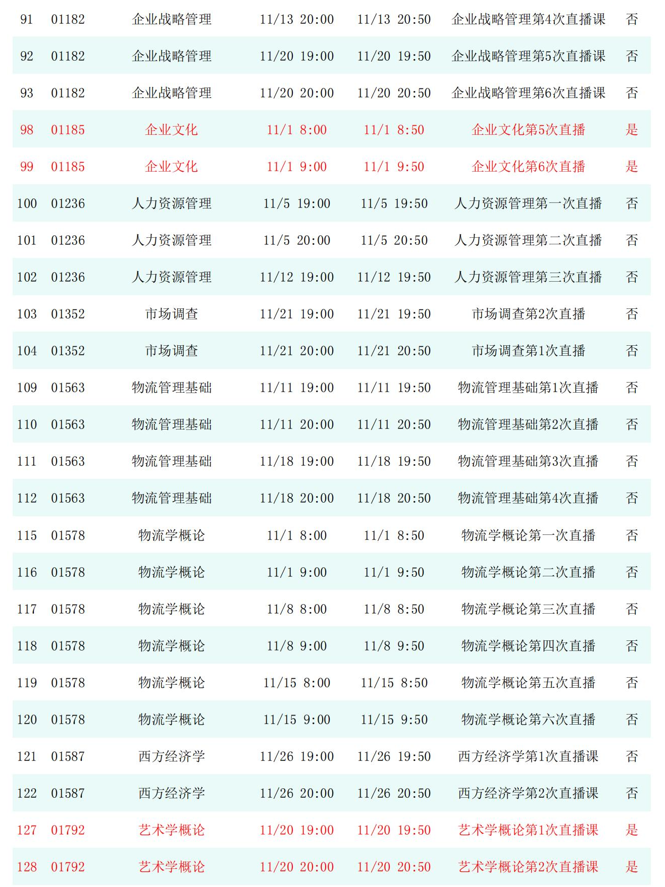 2025年秋季学期开放教育全省直播课安排表(11月)