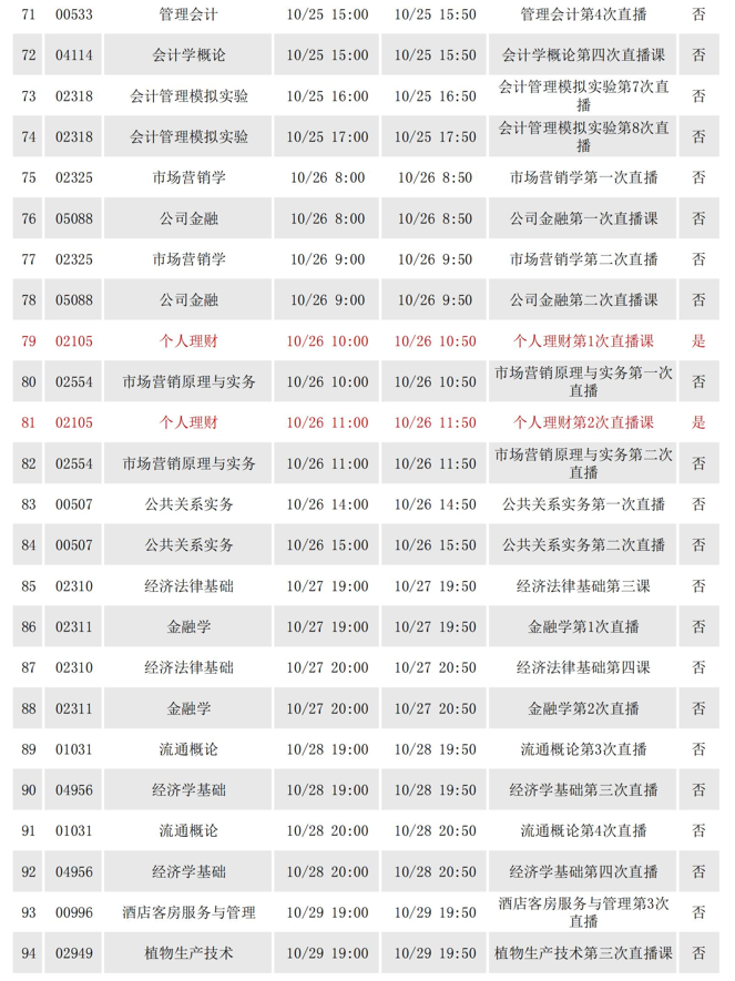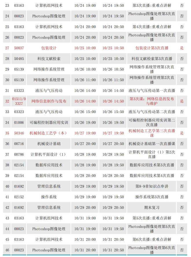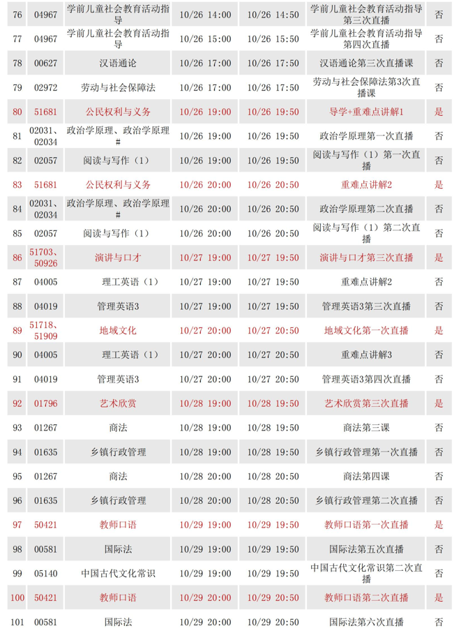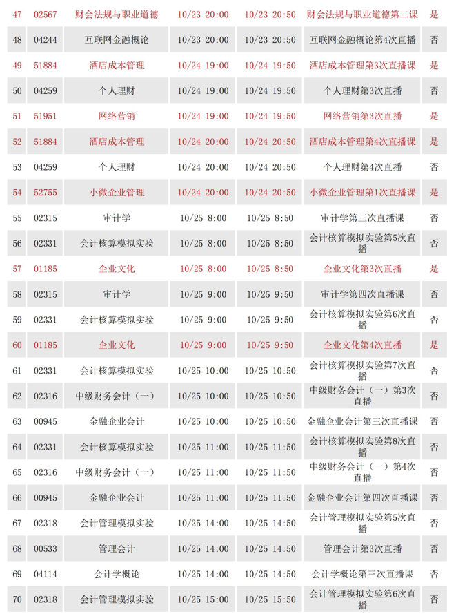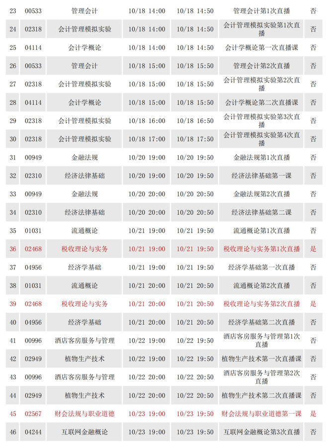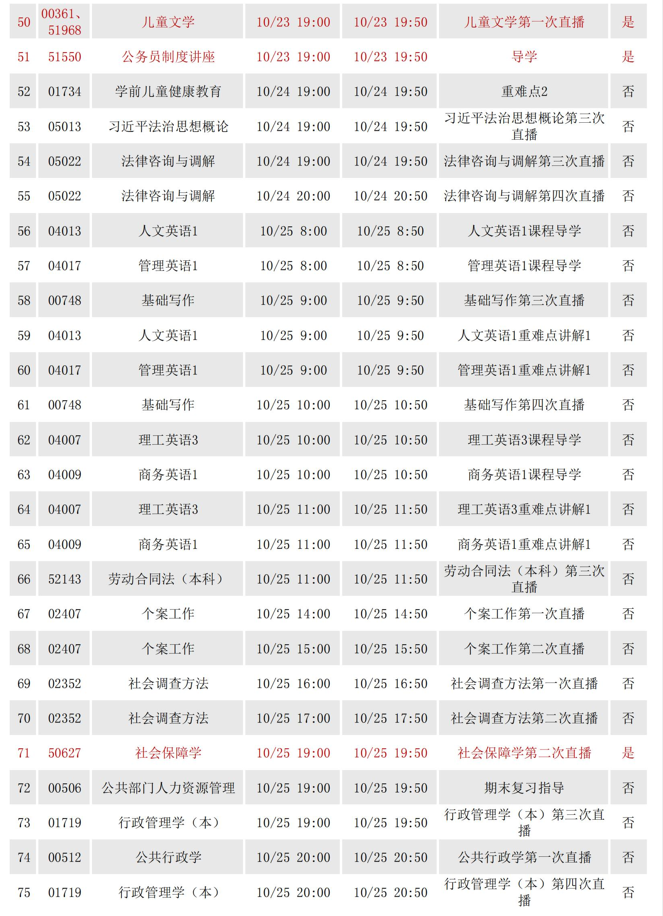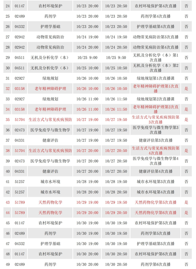 | 2025年秋季学期开放教育全省直播课安排表(10月) |